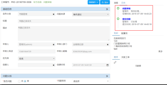 在問(wèn)題單的日志信息模塊,可以查看問(wèn)題數(shù)據(jù)變化前后的修改人,時(shí)間等相關(guān)信息