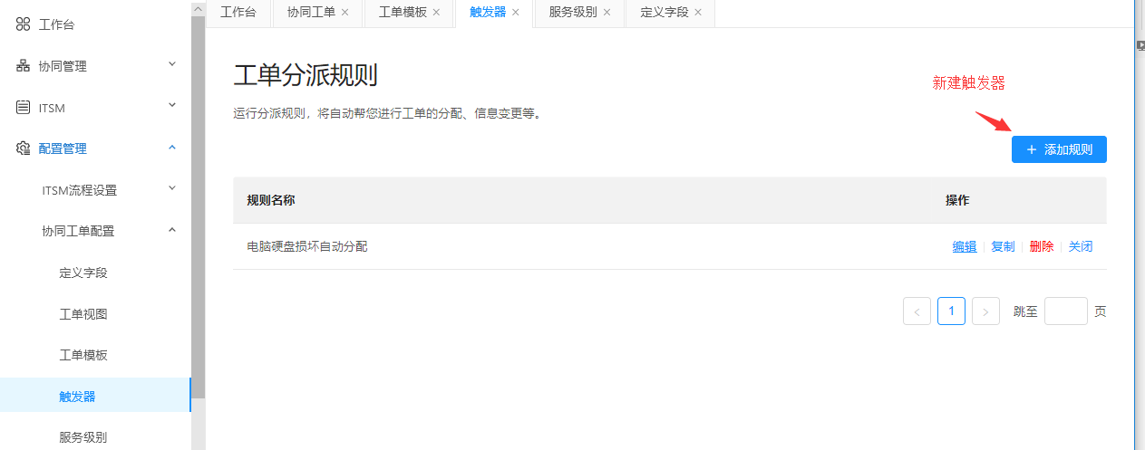 觸發器像一個智能機器人一樣,根據我們預置的條件自動的觸發一些動作,自動派單、修改、通知,升級無所不能,自動轉派工單就是我們最常用的一個場景。