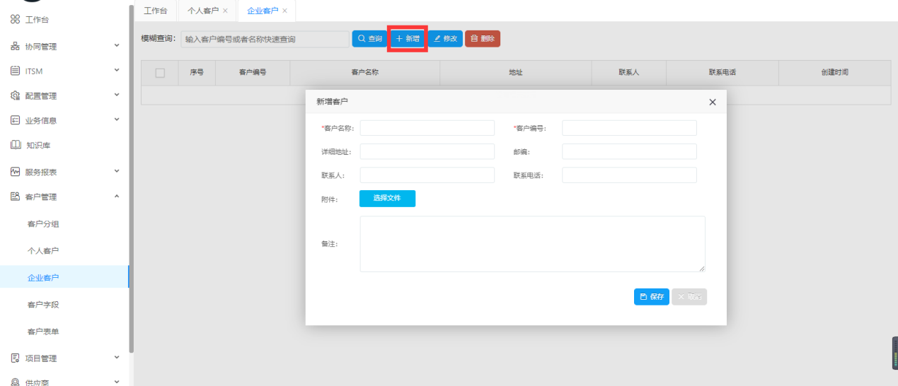 點擊新建客戶。彈出對話框,按要求填寫必填項,根據實際需要填寫。如果確認點擊創建,放棄點擊關閉。