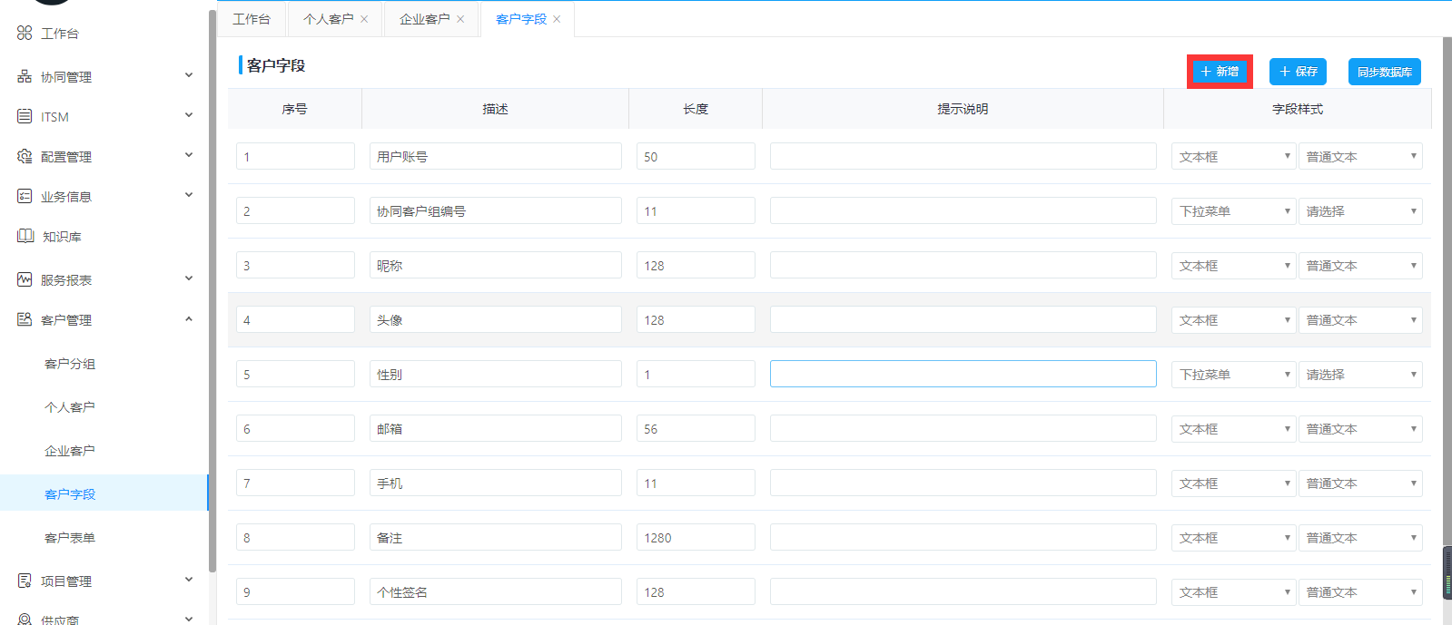 客戶字段主要是對客戶賬號信息的輸入設置字段管理。可以設置賬號,昵稱,郵箱,手機,分組,微信等。