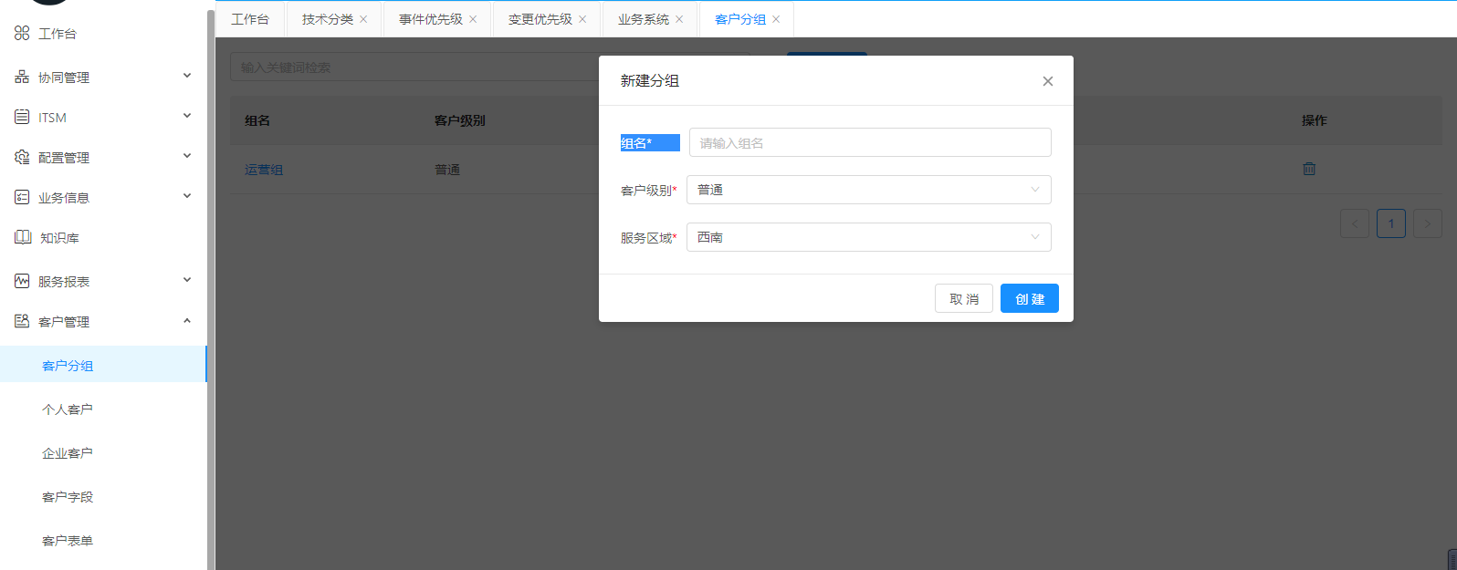 客戶分組主要是對用戶進行分組歸納,合并管理。這樣在設置權限時,可以已部門或組為一個單元,統一設置。