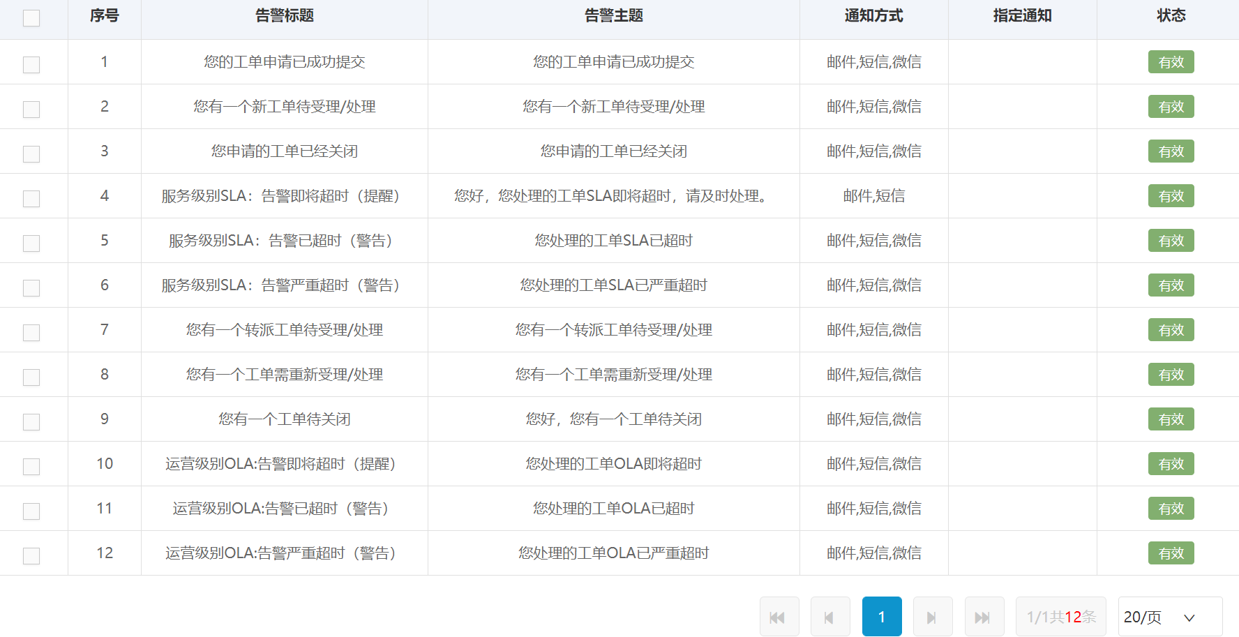 系統(tǒng)內(nèi)置了標(biāo)準(zhǔn)的通知模板,方便您在流程中調(diào)用,可通過郵件、短信、微信方式,通知給申報人、創(chuàng)建人、責(zé)任人、組長等角色