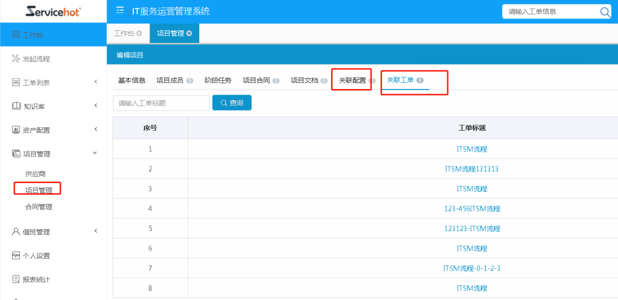 資產(chǎn)打通項目關(guān)聯(lián),關(guān)聯(lián)的配置以及關(guān)聯(lián)的工單都可查看