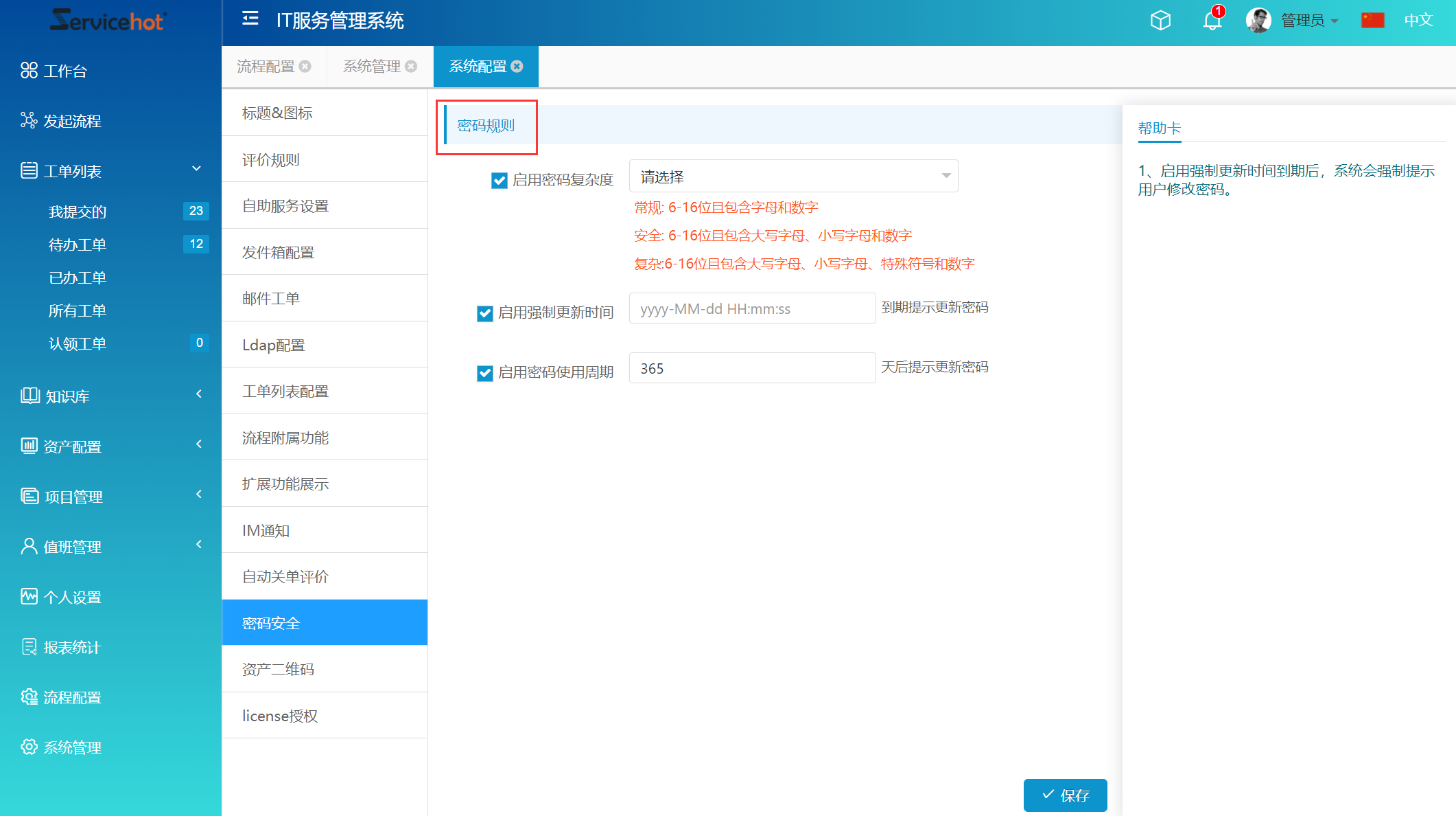 8:密碼規則安全策略,新增可自定義配置密碼復雜度,強制更新提示密碼時間功能。