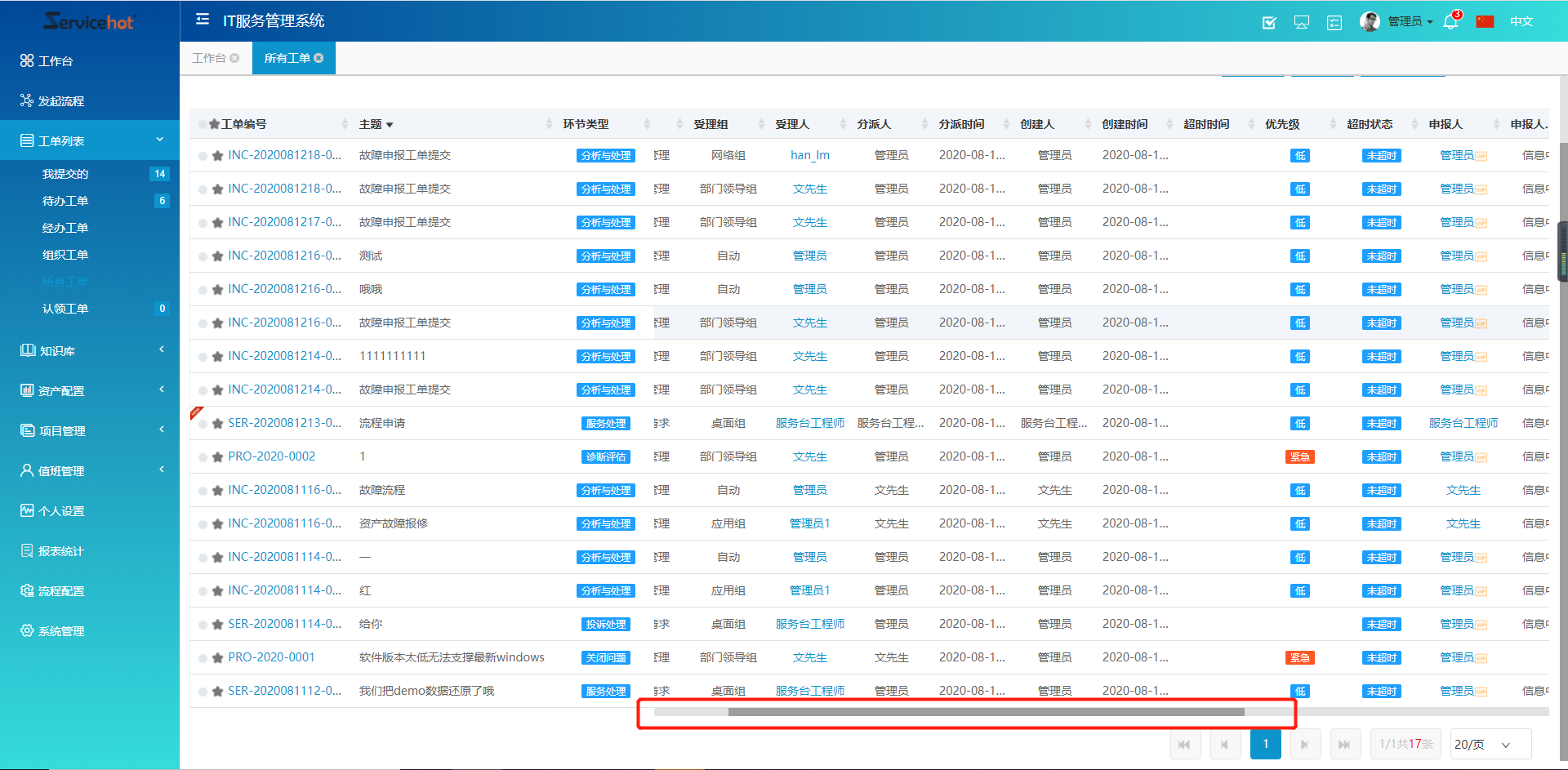 工單展示頁面增加滾動條,系統(tǒng)鎖定工單編號、主體及環(huán)節(jié)類型,用戶可通過滾動條查看每條工單的其他全部內(nèi)容。