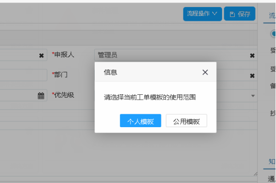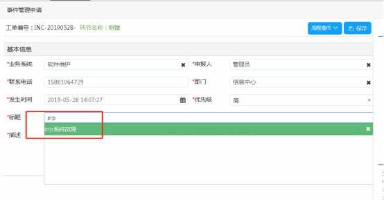 進入新建工單頁面,在標題欄輸入目標關鍵字,系統模糊檢索相關模板并顯示出來。如下圖: