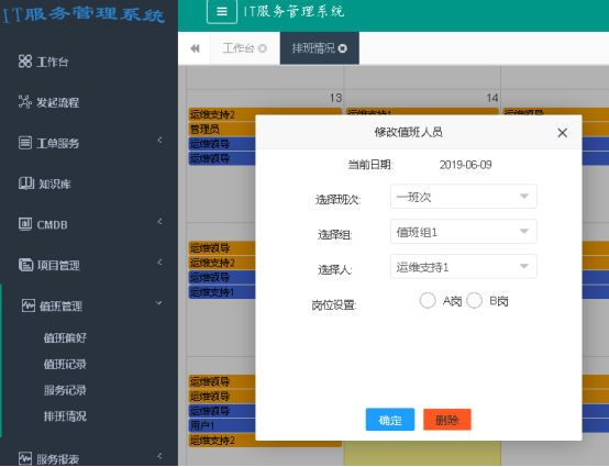 首先需要把排班設置好,在排班的地方分配好值班人員的崗位,如A崗或B崗;崗位設置好之后選擇處理人配置按值班分派,選擇崗位,提交的工單便可直接分配給當天值班人員。
