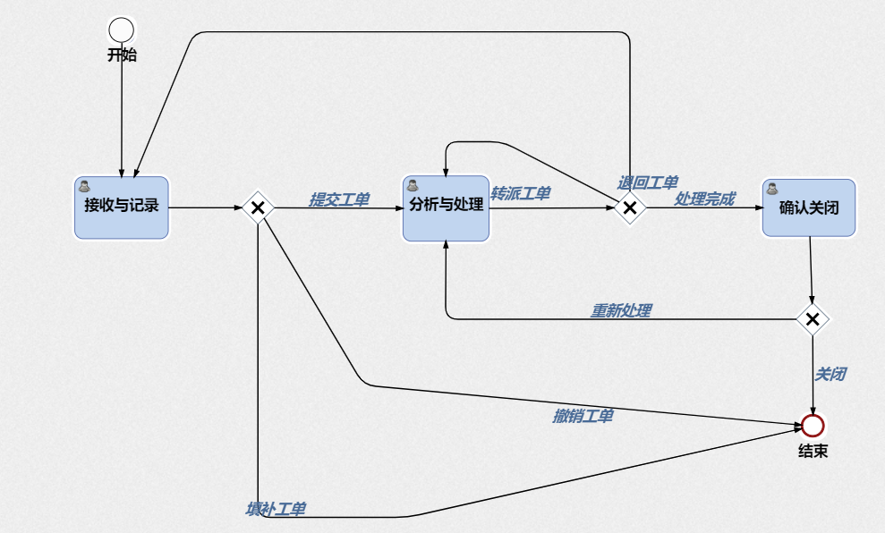 整體流程總共三大階段:識別記錄、調(diào)查診斷、解決關(guān)閉,各階段詳細說明如下: