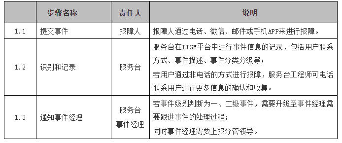 6. 原則上,服務(wù)臺、事件經(jīng)理、指派工程師可根據(jù)實際情況對事件分類、分級等信息進行調(diào)整。